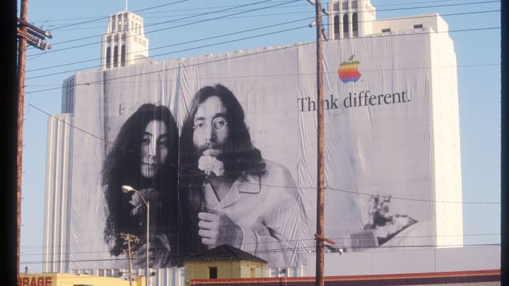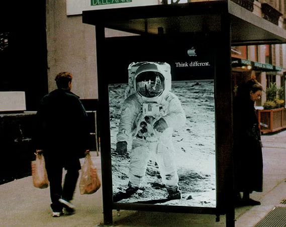 There were no computers in the ads. No specs. No prices. Just a small Apple logo and two words: Think Different.